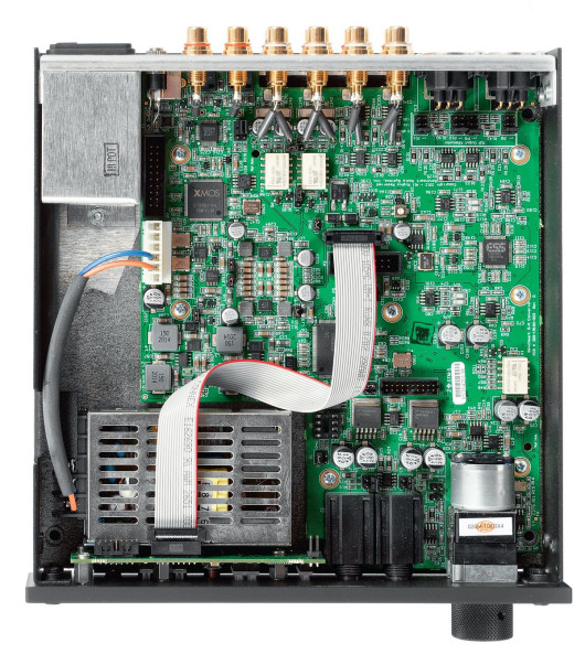 Sygnał z wejścia USB trafi a do niestrudzonego interfejsu XMOS. W części cyfrowej pracuje także autorski system redukcji jittera Benchmark UltraLock3.