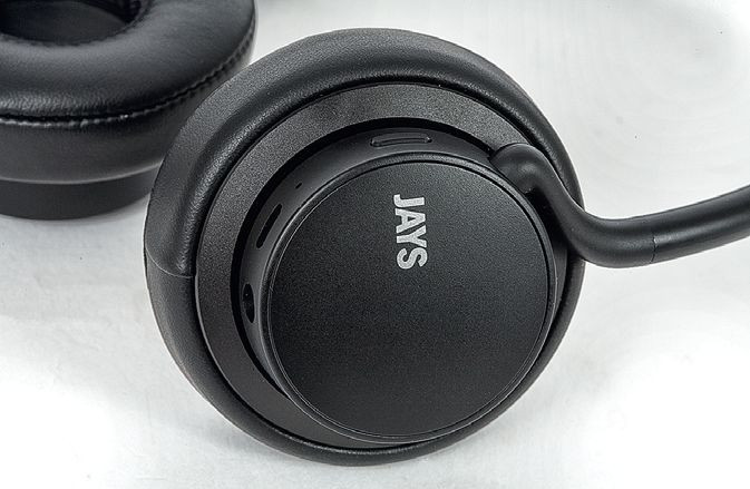 W słuchawkach Jays u-Jays Wireless dominują tworzywa sztuczne, ale pierścienie zewnętrzne mocujące poduszki są metalowe. Pałąk obleczono gumowanym materiałem, słuchawki dość łatwo się rozginają, zakres regulacji (pałąka) jest wystarczający, chociaż po dopasowaniu na moją głowę nie było już luzu.