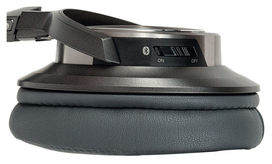 Na prawej muszli znajduje się wyłącznie jeden zapadkowy włącznik zasilania, co uaktywnia funkcję parowania słuchawek ze źródłami Bluetooth - tę operację można wykonać klasycznie, posługując się menu ustawień (np. w smartfonie), albo za pomocą komunikacji zbliżeniowej NFC.