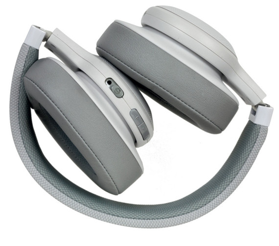 Muszle mają owalny kształt, już tradycyjny dla JBL-a, i są zamocowane elastycznie do dodatkowych zewnętrznych wsporników. Całe muszle możemy obracać (o nieco ponad 90 stopni), co jest przydatne, gdy słuchawki zdejmiemy z głowy i opuścimy na szyję. Pałąk jest bardzo elastyczny, materiały świetne, nic w JBL E55BT nie skrzypi.