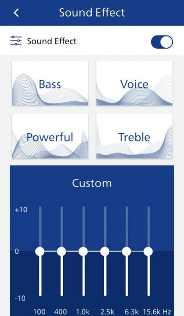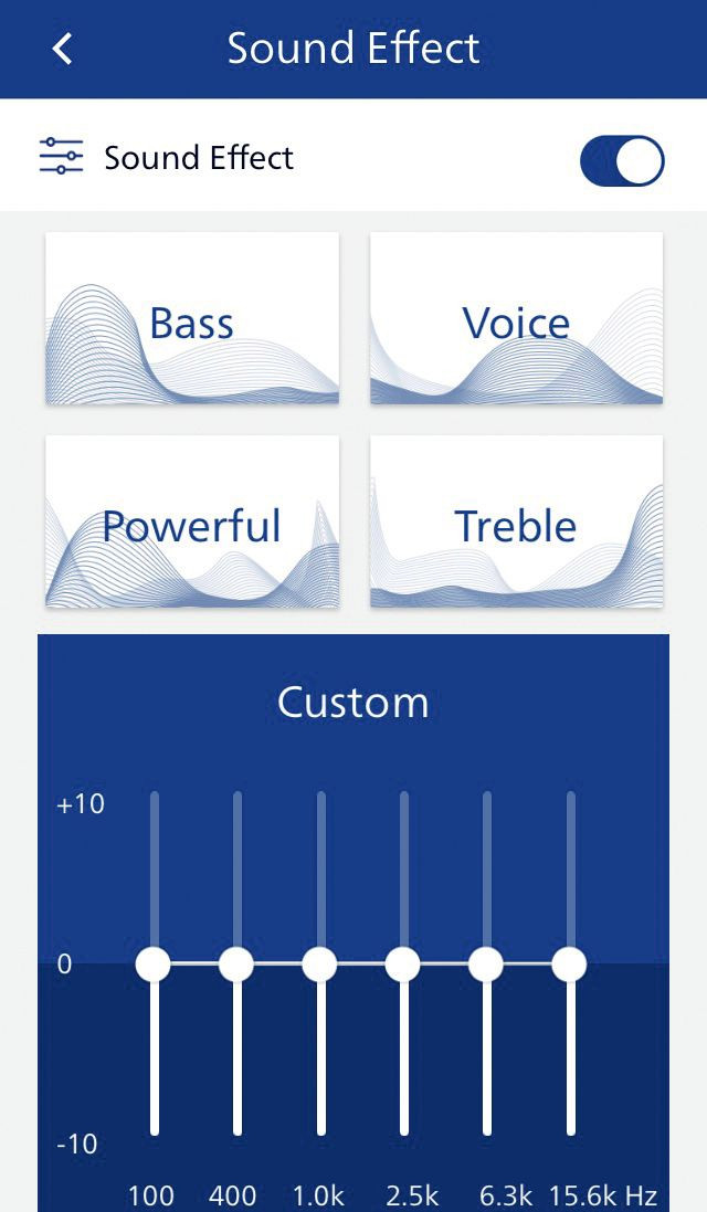 Aplikacja mobilną obejmuje rozbudowane korekcje brzmienia i wiele dodatkowych ustawień.