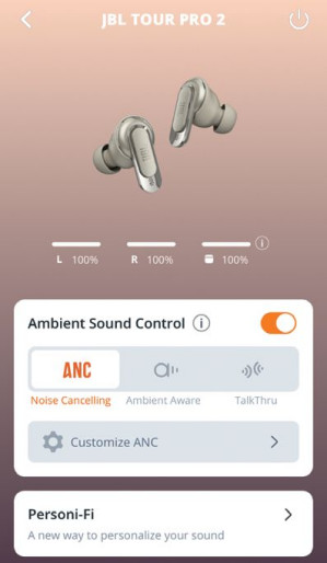 Po uruchomieniu fabrycznie nowego egzemplarza, JBL Tour Pro 2 zameldowały się z aktywnym trybem tłumienia hałasów. Ostatecznie polecam pozostawić ten system włączony bez względu na "okoliczności przyrody", bowiem zwiększa wyrazistość nie tylko w hałaśliwym otoczeniu, ale wpływa korzystnie również w domowym zaciszu.
