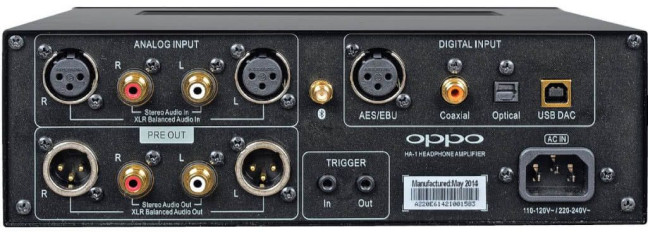 Oppo HA-1 to prawdziwe "centrum" domowego systemu. Zbalansowane i niezbalansowane wejścia analogowe i takie same wyjścia, cztery wejścia cyfrowe oraz gniazda triggera. Sterowanie z tabletu i smartfona zapewnia antenka Bluetooth.