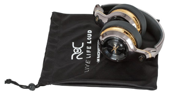 Monster Roc Black Platinum mienią się czernią, platyną i złotem. Dwa jasne kolory zdobią zewnętrzne okrycia muszli i część pałąka. Elementy stykające się z głową słuchacza są czarne. Słuchawki są bardzo duże i ważą 338 g. Potężne są zarówno muszle, jak i pałąk.