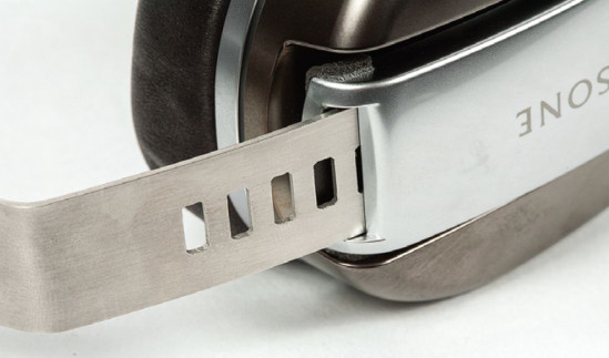 Sztywny pałąk (wyprofilowany metal) sięga od jednej do drugiej muszli. W górnej części wykończono go sprężystą gąbką, obszytą wyjątkowo delikatną, aksamitnie miękką skórą, zdjętą z żyjących w Etiopii (ale chyba już nieżywych) owiec. Poduszki również wykończono bezlitośnie tym cudownym materiałem.