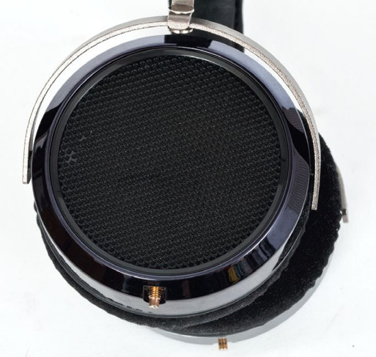 Hi-FiMAN HE-6 są kolejną konstrukcją otwartą w tym teście, tylne części muszli wykończono polakierowaną na czarno metalową siateczką, pod którą znajduje się kolejna przegroda - perforowany materiał o jeszcze mniejszej średnicy oczek.
