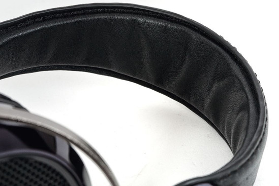 Pałąk z płaskiej, elastycznej taśmy został obszyty skórą, choć bez grubej warstwy wypełniającej. Hi-FiMAN HE-6 są bardzo sztywne, ściskają głowę mocno, czemu w sumie trudno się dziwić - ciężkie muszle zsunęłyby się z niej, gdyby nie zostały odpowiednio zakotwiczone.