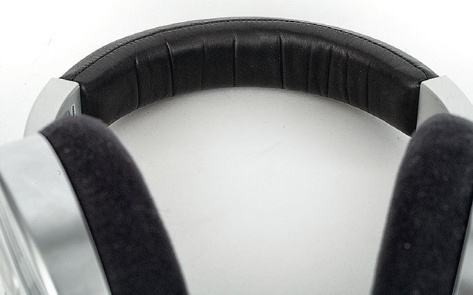 Pałąk jest dość wąski, w górnej części pokryty elastyczną gąbką oraz miękką, naturalną skórą. Producent chwali się, że przygotowano ją z pochodzących z Etiopii owiec; przyznaję, że materiał jest bardzo komfortowy.