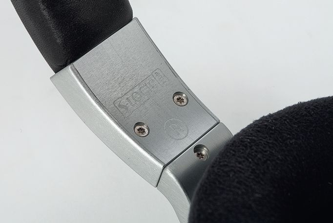 Muszle są dość obszerne, w celu uzyskania jak najlepszego komfortu poduszki nie zostały jednak wykonane ze skóry, ale z mięciutkiego weluru. Tylne obudowy muszli są aluminium - ta część konstrukcji Ultrasone Edition 12 jest najbardziej efektowna.