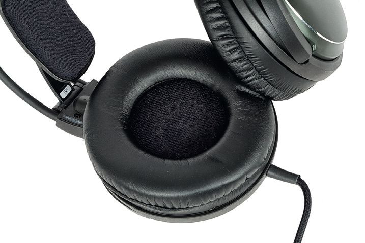 Muszle wykonano z aluminium i starannie polakierowano na kolor ciemnobutelkowy. Są one bardzo obszerne, mieszczą się nich przecież wyjątkowo duże 53-mm przetworniki. Grube poduszki obszyto skórą, całe ucho mieści się w środku.