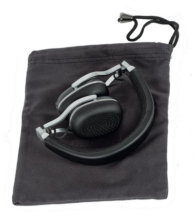 Dzięki "łamanym" przegubom słuchawki można złożyć, w komplecie jest miękki woreczek transportowy z wewnętrzną przegródką na akcesoria.