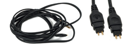 Sennheiser stosuje dość nietypowe złącza z dwoma trzpieniami o różnych średnicach, wchodzą do gniazd (w słuchawkach) z mocnym oporem.