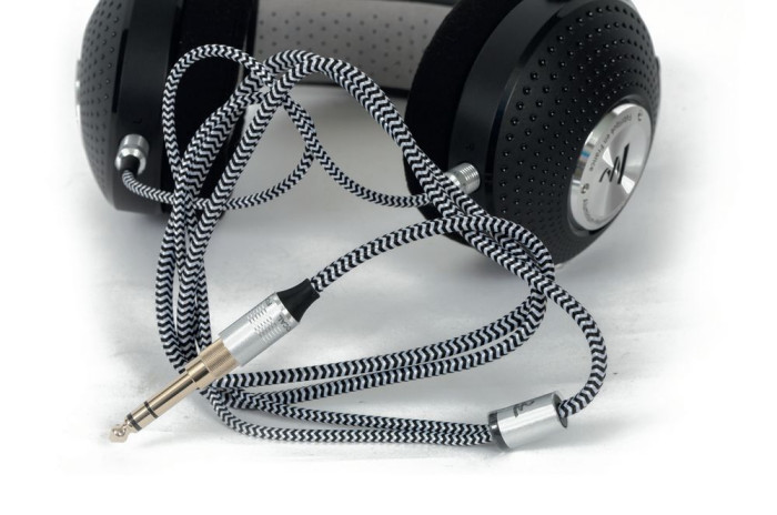 Kabel jest stylowy, w grubym tekstylnym oplocie, ale zbyt krótki (1,2 m), aby wygodnie podłączyć się do sprzętu stacjonarnego, mimo że na wyposażeniu jest przejściówka z 3,5 mm na 6,3 mm (na zdjęciu założona).