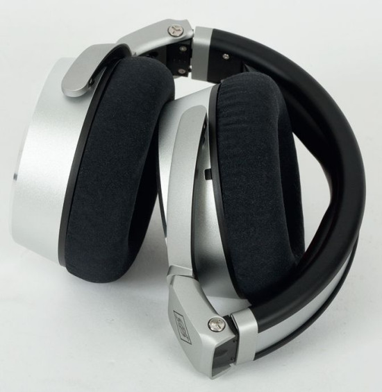 Muszle słuchawek Neumann NDH 20 zawieszono na oryginalnych, przytwierdzonych tylko z jednej strony przegubach. Wszystko działa idealnie i wydaje się bardzo trwałe.