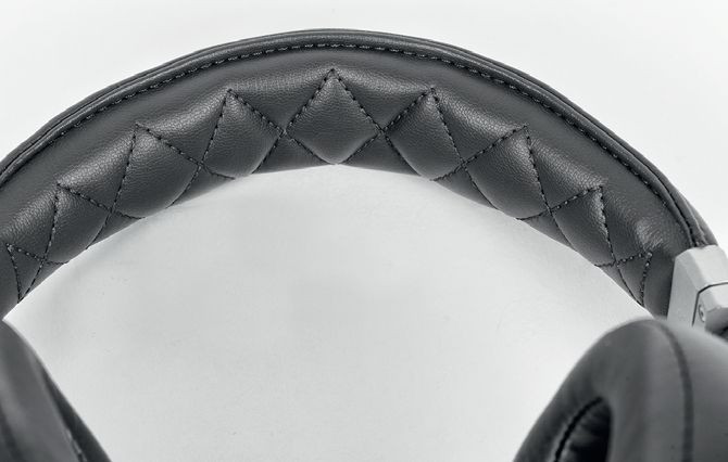 Elegancko prezentują się również pikowane przeszycia na stykającej się z głową górnej części pałąka; wykończono go mięciutką skórą, podobnie jak dość niekonwencjonalne, grube pady z owalnym wycięciem na uszy, które wydaje się dość wąskie.