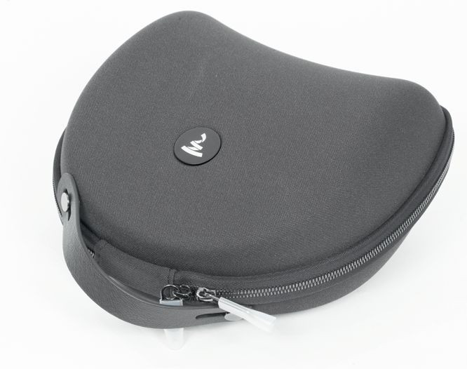 W dużym, sztywnym, nobliwym, a zarazem skromnym czarnym pudle znajduje się neseserek, który ułatwia zabranie słuchawek w podróż (mimo że nie składają się tak jak rasowe mobilne); logicznie w tym samym neseserku jest miejsce na krótszy z dwóch kabli (1,5 m), zakończony wtykiem 3,5 mm, a więc odpowiedni do podłączenia urządzeń mobilnych.