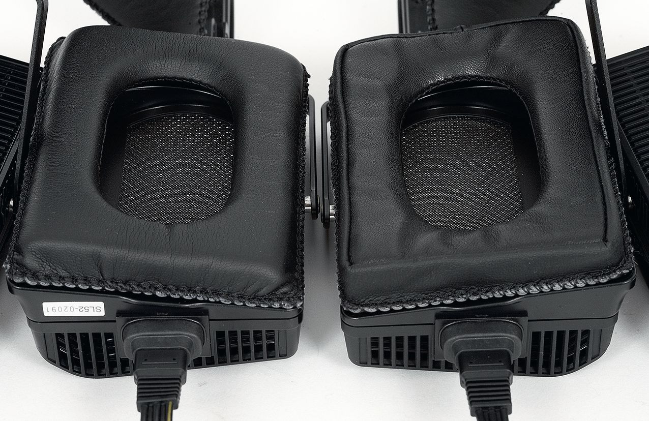 Poduszki, w ślad za muszlami, są agresywnie prostokątne z zewnątrz, ale wewnątrz mają wycięcie w kształcie stadionu, dobrze dopasowujące się do ucha. Są grube, miękkie i delikatne w dotyku. Również prosta regulacja pozycji skórzanego paska i dwuosiowy mechanizm (obrotu widelca w pałąku i muszli w widelcu) działają bez zarzutu.