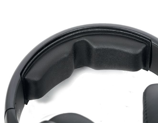Pałąk jest szeroki, od strony głowy obłożony poduszeczką wykończoną sztuczną skórą, podobnie jak pady. Sennheiser podkreśla dobrą pasywną izolację. Słuchawki leżą na głowie bardzo stabilnie, chociaż przy dość mocnym nacisku. Mechanizm regulacyjny opiera się na solidnej, metalowej taśmie.