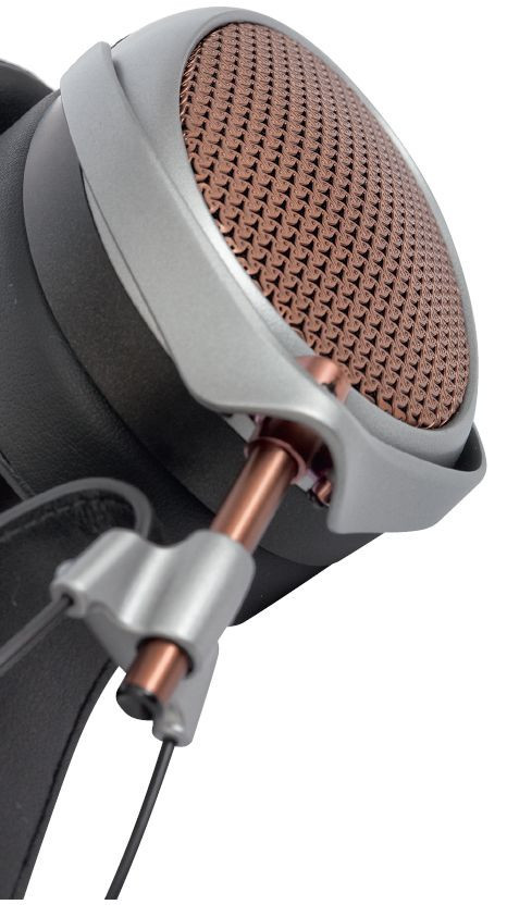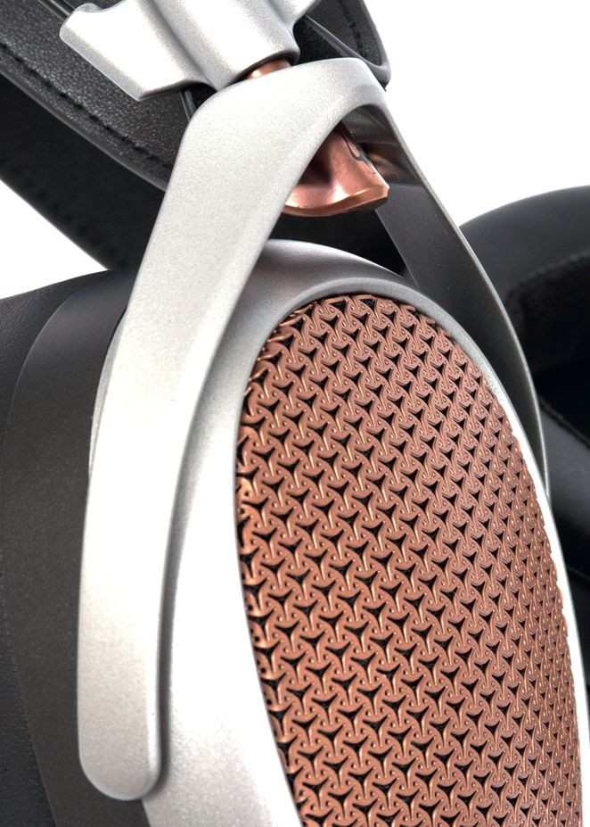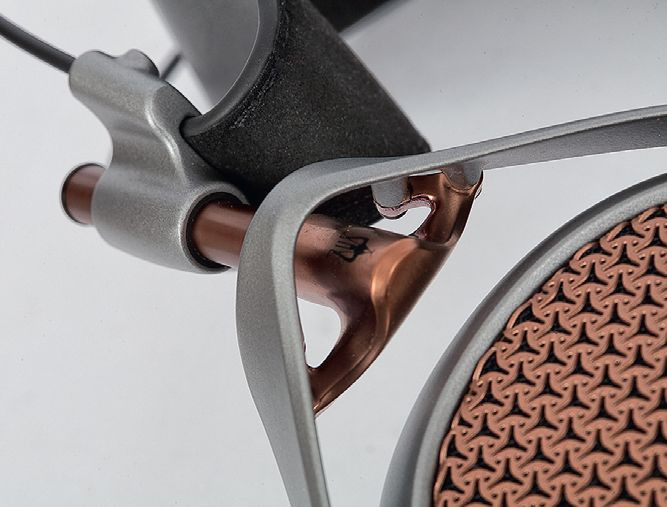 Tylne, ażurowe kapselki intrygują wzorzystymi dyfuzorami, obszyte skórą pady są mocowane magnetycznie. Za owalnymi muszlami podąża kształt widelców. Trzpieniowy mechanizm regulacyjny porusza się płynnie i z optymalnym oporem.