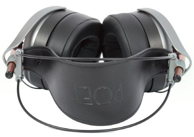 Typowy pałąk zastąpiono dwoma prętami, pod którymi jest podwieszony (i fikuśnie wywinięty) subtelny pasek z czarnej skóry. Kable podłączamy do każdej muszli.