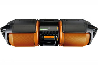 Głośniki subwooferów są podświetlane na pomarańczowo w rytm muzyki (pokazane na zdjęciu, ale można wyłączyć). Odtwarzacz CD radzi sobie z plikami MP3 i WMA, i to nawet w przypadku plików nagranych w osobnych folderach, umożliwia też tworzenie playlitsty dla płyt (do 32 pozycji). Jest jeszcze timer z budzikiem i cała masa innych drobiazgów.