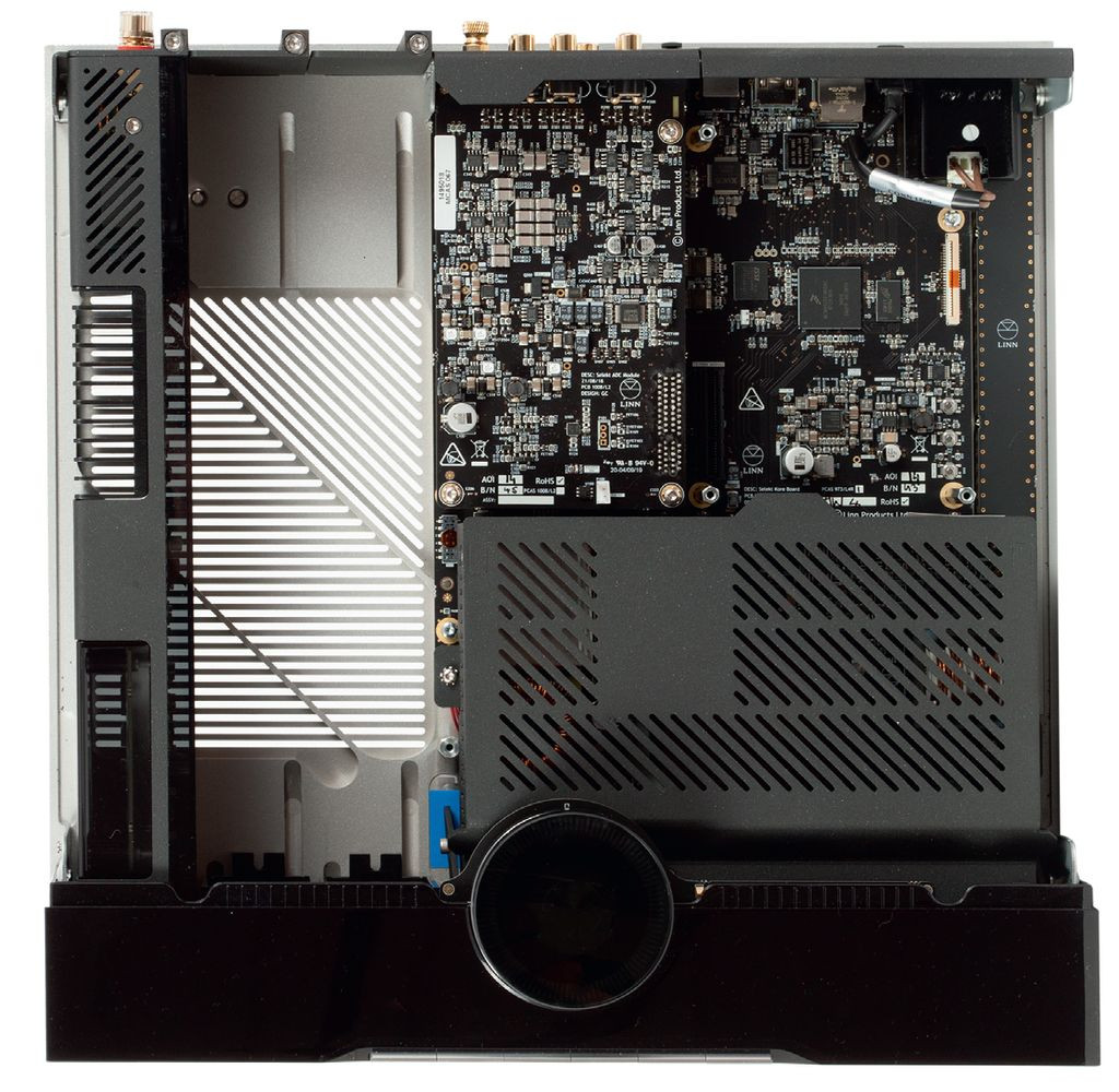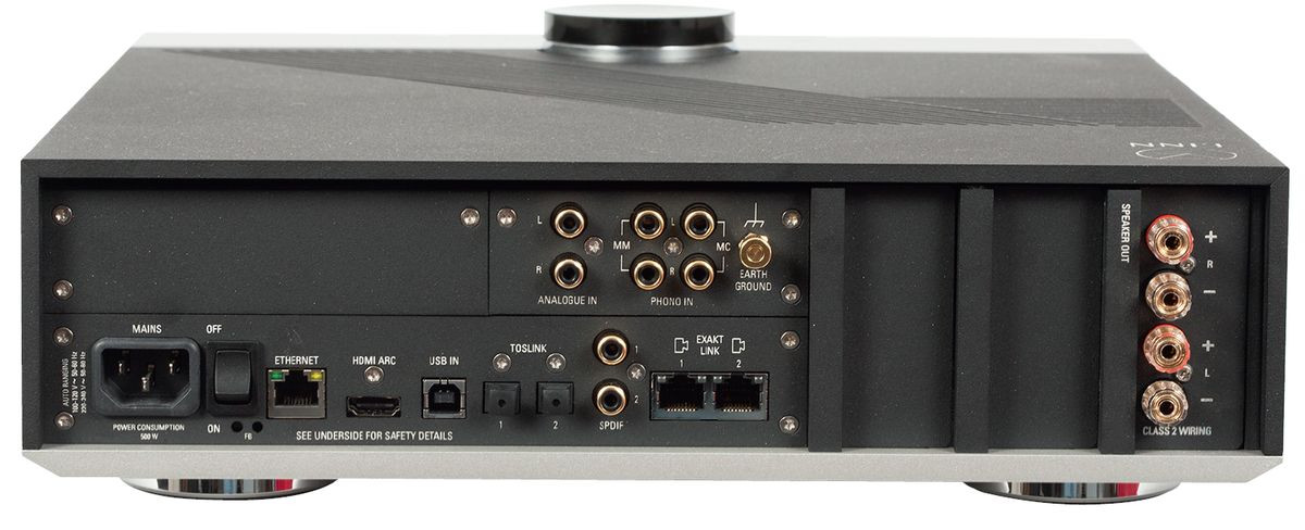W ten sposób powstała edycja z wbudowaną amplifikacją, nieformalnie określona przez nas all-in-one (w oficjalnych materiałach Linn przedstawia ją jako "with Integrated Power Amps"). Mamy więc źródło ze wzmacniaczem, czyli bazową, kompletną elektronikę, do której trzeba podłączyć tylko kolumny głośnikowe (pasywne).