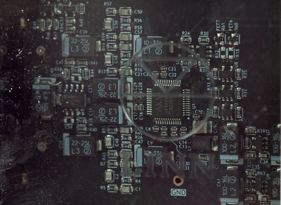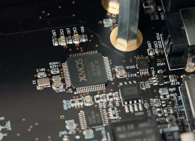 W sekcji wejść analogowych pracuje przetwornik A/C Burr Brown PCM4222 - to układ stereofoniczny z bardzo wysoką, teoretyczną dynamiką 124 dB. Z kolei sygnał analogowy dla końcówek mocy przygotowuje AKM AK4493EQ - układ o imponujących parametrach, 32 bit/768 kHz i DSD512.