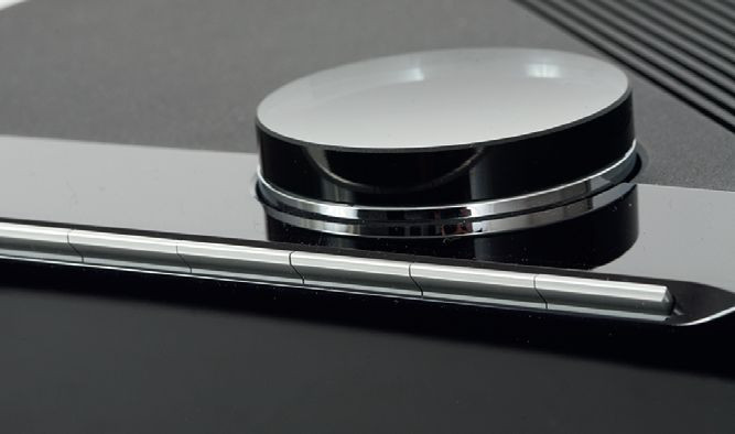 W górne pokrętło wkomponowano prosty wskaźnik poziomu głośności. Manipulator ten jest wielofunkcyjny, można nim obracać, a także wybrane strefy naciskać, wywołując w ten sposób np. menu.