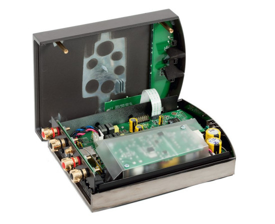 Wzmacniacze Arcama znane są z pracy w nietypowej klasie G, jednak w tak małym urządzeniu nie było dla nich dość miejsca (i budżetu...). Zastosowano rozwiązanie dzisiaj bardziej standardowe - układy impulsowe zarówno w końcówkach mocy, jak i w zasilaczu.
