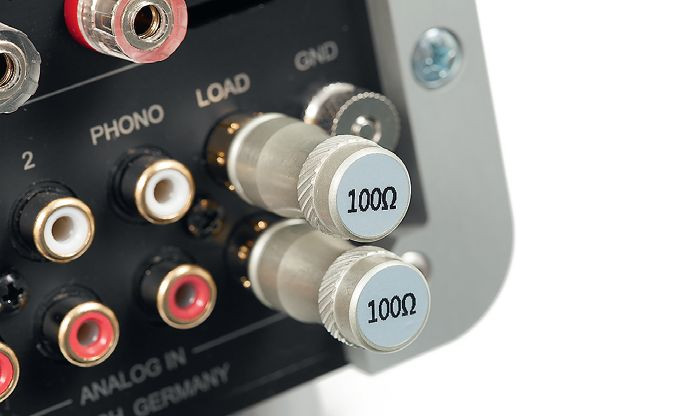W pudełku z akcesoriami są trzy - dla impedancji 100 Ω, 200 Ω lub 1 kΩ. Można samodzielnie wykonać własne, "strojąc" układ do dowolnej wartości. To parametr istotny dla wkładek typu MC; układ phono pozwala oczywiście obsłużyć także MM, a tego wyboru dokonujemy w menu.