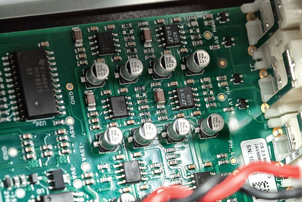 Przedwzmacniacz (analogowy) znajduje się na dużej płytce drukowanej w tylnej części obudowy. Rozbudowana sekcja gramofonowa opiera się na wysokiej jakości wzmacniaczach operacyjnych, sterowana cyfrowo regulacja głośności - na scalakach Burr Brown PGA2311.