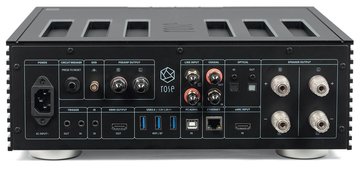 Kluczowym problemem klasy D pozostaje wpływ filtrów wyjściowych. W tej sprawie inni specjaliści od klasy D zabierają głos i ogłaszają stosowanie wyrafinowanych układów kompensacyjnych; Rose na ten temat milczy, ale wyniki są dobre – być może miała na to wpływ właśnie klasa AD. Cyfrowe centrum urządzenia tworzą dwa wydajne procesory ARM (technika stosowana powszechnie w smartfonach i komputerach).