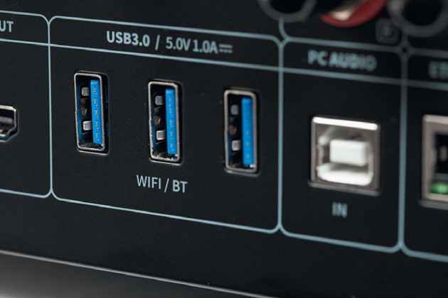 Każde z trzech gniazd USB można wykorzystać jako wyjście audio (np. dla zewnętrznego przetwornika DAC, co jednak jest mało kuszące, gdyż RS520 ma świetny, zintegrowany DAC), można także podłączyć dysk twardy. Kolejne USB służy jako wejście w formule USB-DAC (np. dla komputera). Producenci nowoczesnych urządzeń, takich jak RS520, mają dzisiaj łatwiej.