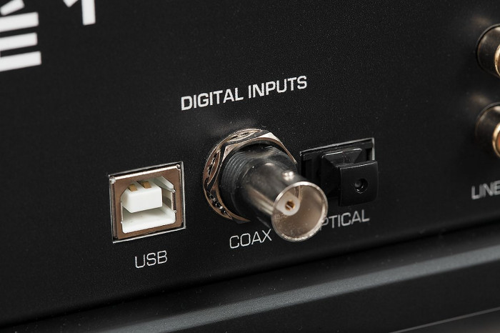 Mamy tu trzy wejścia cyfrowe – optyczne, elektryczne współosiowe (gniazdo BNC) oraz USB-B do komputera; parametry tego ostatniego to PCM 32 bit/384 kHz oraz DSD128 – i chociaż nie są to aktualne rekordy świata, w praktyce całkowicie wystarczą. Na środku tylnej ścianki są jeszcze dwa złącza USB-A dla nośników pamięci z muzyką (np. dysków twardych).