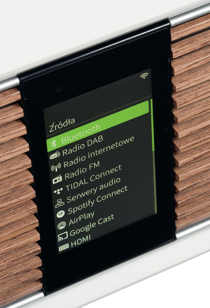 Wszystkie funkcje, w tym ustawienia i regulacje, są dostępne w samym R810. Ruark wie, gdzie należy się zatrzymać, aby użytkownik nie wpadł w funkcjonalne maliny. Nawet w urządzeniu tak mocno strumieniowym pewne funkcje nadal wygodniej i szybciej obsługuje się w tradycyjny sposób. Służy temu moduł z klasycznymi przyciskami, nawigację ułatwia kolorowy ekran wyświetlacza.