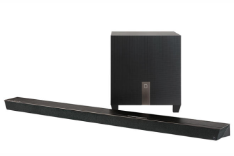 Definitive Technology W Amp jest bardzo lekki, cała obudowa została zrobiona z tworzywa sztucznego. Przednia ścianka tworzy niewielką wnękę, wewnątrz której znajduje się tylko jedna dioda komunikująca stany urządzenia.