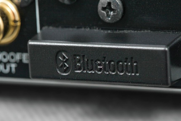 Obok wejść cyfrowych, na tylnej ściance znajduje się jeszcze niewielka, plastikowa osłona, wewnątrz której umieszczono anteny dla modułów bezprzewodowych Bluetooth – to konieczne przy metalowej obudowie.
