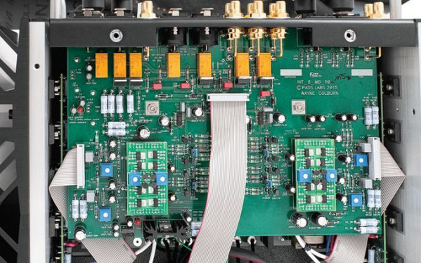 Obwody przedwzmacniacza skupiono na jednej płytce, ale kanały poprowadzono w taki sposób, aby były lustrzanymi odbiciami. Jednym z ciekawszych fragmentów jest wspomniana już regulacja głośności. Cały wzmacniacz jest zbalansowany, więc wymagania względem tej sekcji są bardzo wysokie.