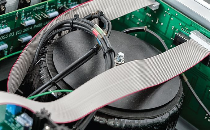 Podstawą zasilania jest ogromny transformator toroidalny. Pozostałe obwody zasilające przeniesiono na płytkę w pobliżu tylnej ścianki, na samym dole obudowy. Wyżej miejsce zajął duży moduł przedwzmacniacza. Sygnały z wejść są obsługiwane przez przekaźniki, sekcję napięciową zbudowano z elementów dyskretnych.