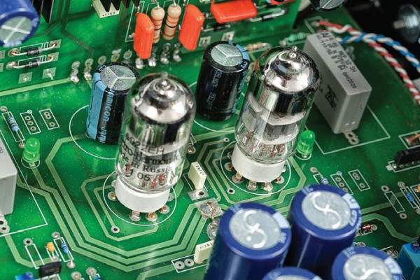 Początkowa sekcja przedwzmacniacza (wraz z regulatorem wzmocnienia) okazuje się być całkowicie pasywna, dopiero w dalszej kolejności sygnały trafiają na główną płytkę drukowaną i do modułów lampowych.