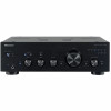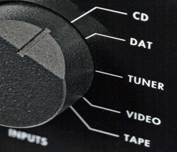 Na błyszczącym, czarnym froncie kontrastują cztery srebrne śruby, poza nimi są tutaj jeszcze pokrętło wzmocnienia, wyboru wejść oraz mechaniczny wyłącznik zasilania. Regulator głośności pracuje z wyraźnymi punktami oporowymi, co sugeruje, iż powinien się za nim kryć tradycyjny potencjometr analogowy.