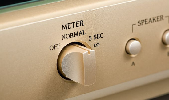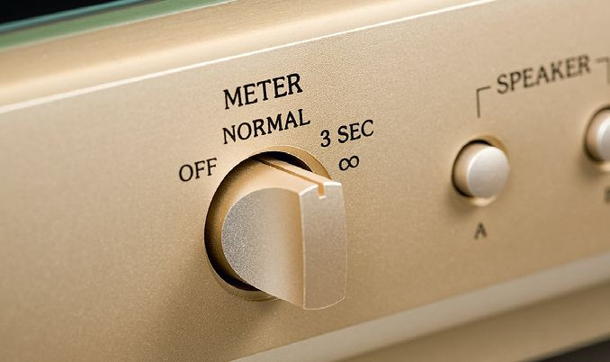 Duże, wychyłowe, podświetlane, definiują wygląd wzmacniacza. Choć to "tylko" wzmacniacz mocy, mamy w nim sporo funkcji. Na przykład możliwość wyboru czułości wejściowej 0/-3/-6/-12 dB, aktywnych wyjść głośnikowych, a także aktywnego wejścia. Sygnał możemy do urządzenia wysłać w formie zbalansowanej lub niezbalansowanej.