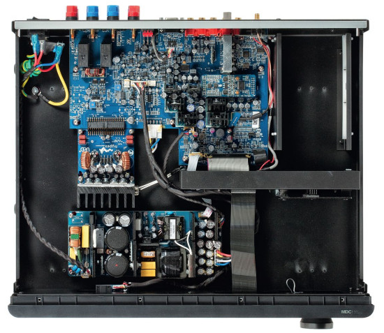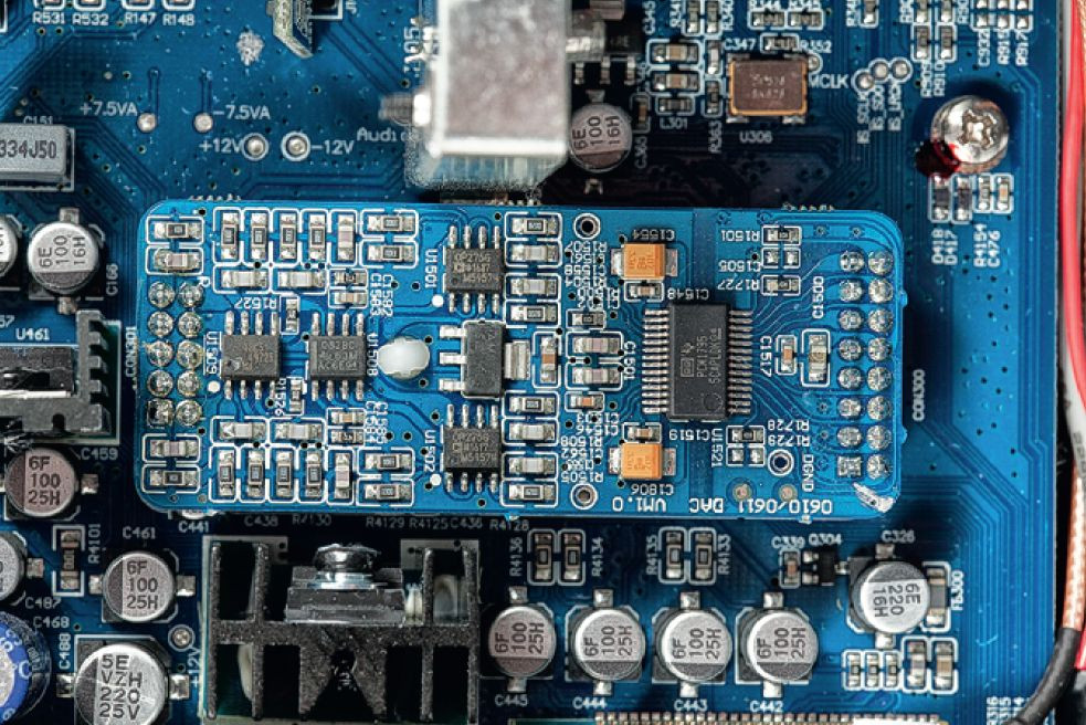 Przetwornik C/A jest znakomity - to Burr Brown PCM1795 (32 bit/192 kHz, 123 dB). Sekcja przedwzmacniacza i sterowanie zajmują dużą płytkę z tyłu, do której dołożono mniejszy moduł przetwornika DAC oraz starannie zaekranowany układ BT.