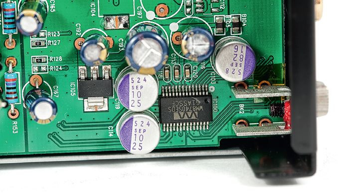 Płytka cyfrowa została przygotowana klasycznie, ze sprawdzonych komponentów. Zatem jest tam moduł wejściowy AKM AK4114 oraz niestrudzony ( i znakomity) interfejs USB Xmos. Do roli przetwornika cyfrowo-analogowego wybrano scalak Wolfson WM8740 z obsługą PCM 24 bit/192 kHz i teoretyczną dynamiką na poziomie 117 dB; mimo kilkuletniego stażu rynkowego to wciąż dobry wybór.