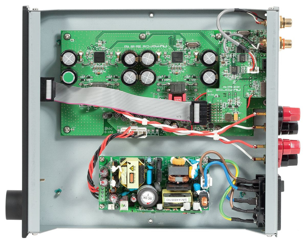 Nie licząc mniejszych modułów pomocniczych, konstrukcja wzmacniacza opiera się na dwóch dużych płytkach drukowanych, jedna zawiera impulsowy zasilacz, druga - kompletny tor audio.