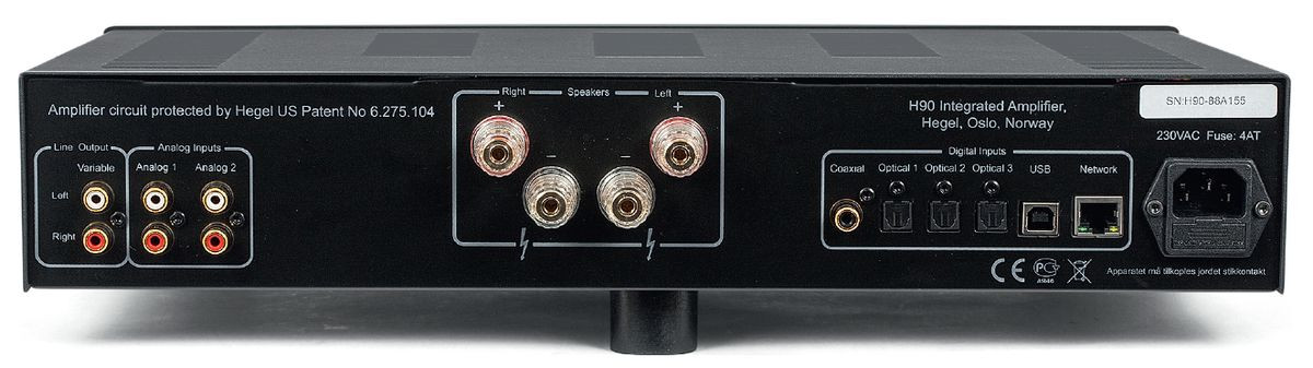 Hegel H90 jest urządzeniem z klasyczną, analogową ścieżką wzmocnienia sygnału, chociaż patrząc na tylną ściankę można odnieść wrażenie, że priorytetowa jest tutaj sekcja wejść cyfrowych. Na jej tle panelik analogowy jest skromny, zaledwie z dwoma wejściami RCA, chociaż jest też wyjście (regulowane - z przedwzmacniacza).