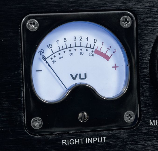Sprawdziłem działanie wskaźników; intrygowało mnie już wcześniej (podczas odsłuchów) ich zdecydowane, mocne wychylanie się nawet przy umiarkowanych poziomach głośności. Wskazanie "0" oznacza moc zaledwie 0,3 W (przy 8 Ω), a wskazania kończą się (wskazówka na końcu) jeszcze przed granicą 1 W.
