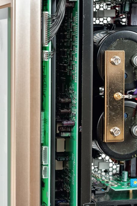 Wszystko przygotowano bardzo solidnie i starannie, instalując wewnętrzne belki wzmacniające, które są jednocześnie ekranami. Wydzielono w ten sposób sekcję wejść z gniazdami RCA i XLR, a także terminalami głośnikowymi.