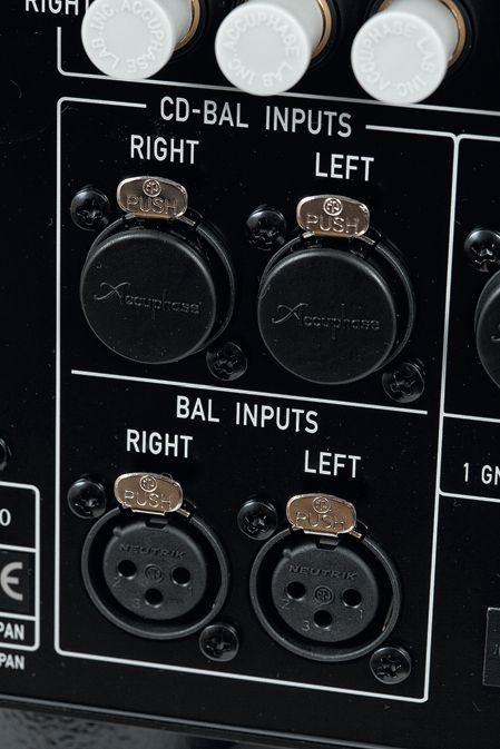 Accuphase E-650 ma pięć wejść liniowych RCA (nie licząc pętli dla rejestratora) i dwa komplety XLR-ów. Standard zbalansowany (dublujący RCA) jest także w zespole wejścia na końcówkę mocy/ wyjścia z przedwzmacniacza.