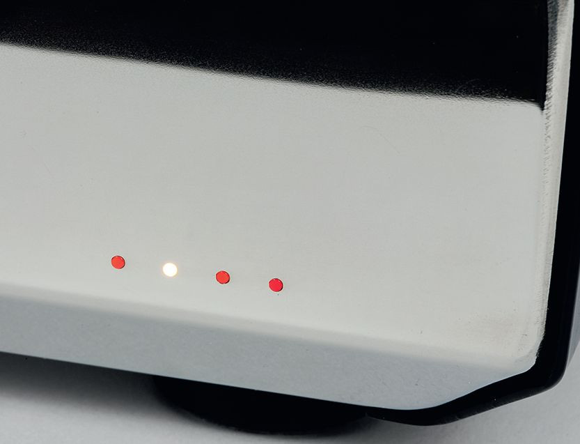 Każdemu z wejść przyporządkowano jedną diodę; nie mają one żadnych oznaczeń, więc działamy, przynajmniej na początku, trochę na czuja. Po włączeniu zasilania zapala się dodatkowa, czerwona dioda, co oznacza, że wzmacniacz znajduje się w fazie rozruchu; po kilkudziesięciu sekundach gaśnie, gdy załączane są już obwody wyjściowe.